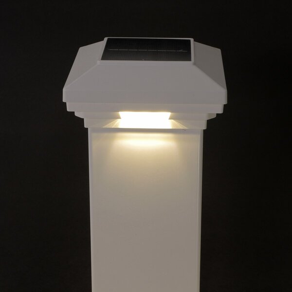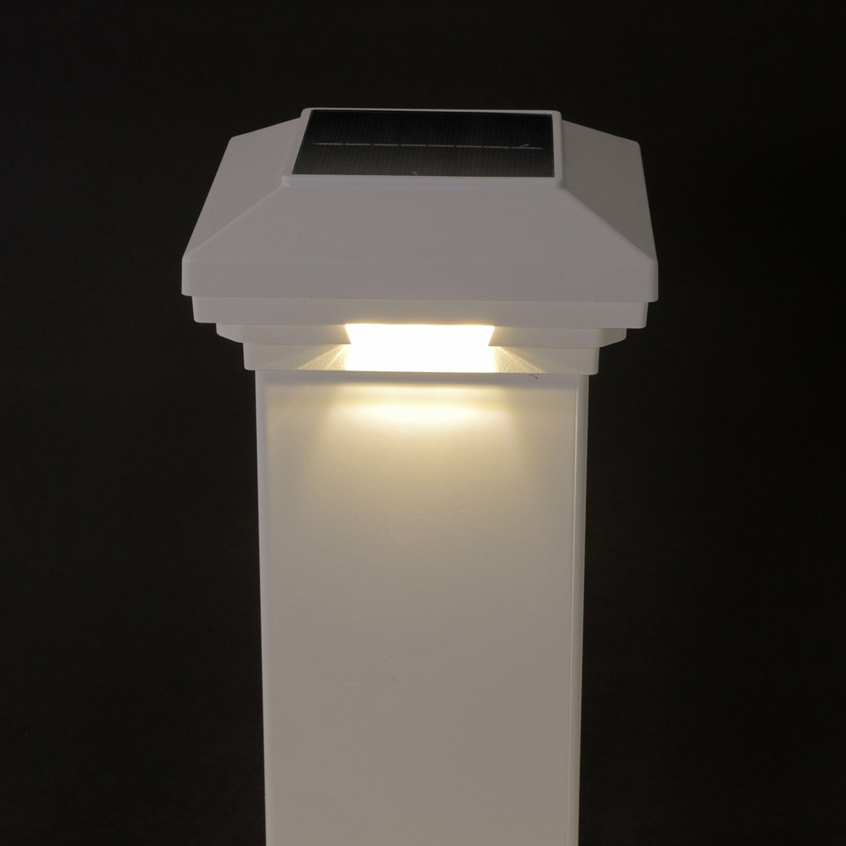 Ultra Bright's 4 in. x 4 in. / 3½ in. x 3½ in. Adaptor Solar Post Cap Light is made to last. Advanced ASA UV resistant composite material, user-replaceable nickel-metal hydride (NiMh) batteries (included), fully water-proof IP68 electronics, and tempered glass laminated solar panel ensure longevity.